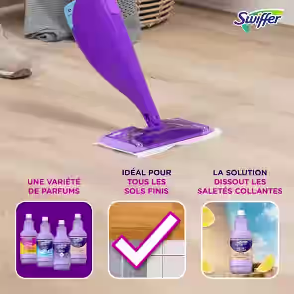 La solution prête à utiliser du nettoyant pour planchers Swiffer JetFrais multi-surfaces a été spécialement conçue pour le balai à pile Swiffer JetFrais tout-en-un. Sa formule sécuritaire* à séchage rapide dissout la saleté et les dégâts tenaces et collants afin de redonner à vos planchers leur beauté naturelle.